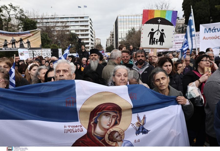 Συλλαλητήριο στο Σύνταγμα κατά του γάμου ομόφυλων ζευγαριών και της τεκνοθεσίας – ΦΩΤΟ