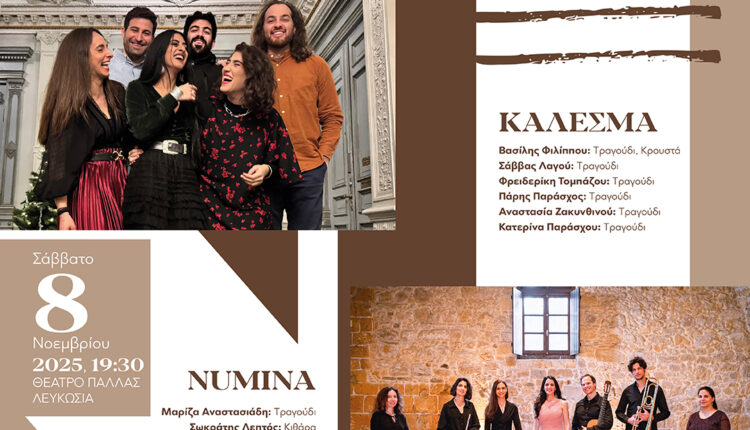 Μια ιδιαίτερη μουσική συνάντηση, όπου ήχοι, ρυθμοί και πολιτισμοί συνδιαλέγονται, θα πραγματοποιηθεί με τη συμμετοχή δύο σημαντικών κυπριακών μουσικών συνόλων: του Φωνητικού Συνόλου “Κάλεσμα” και του Μουσικού Σχήματος “Numina”.
