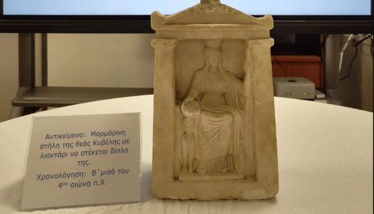 Στο πλαίσιο της έρευνας, εντοπίστηκε κρυμμένη σε πατάρι και κατασχέθηκε μια μαρμάρινη ναόσχημη αναθηματική στήλη (ένθρονη θεά Κυβέλη με ένα λιοντάρι δίπλα της), η οποία χρονολογείται στον 4ο π.Χ. αιώνα.