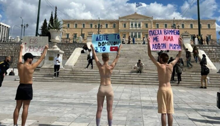 Σύνταγμα: Διαμαρτυρία vegan ακτιβιστών για τη θανάτωση αμνοεριφίων για το Πάσχα