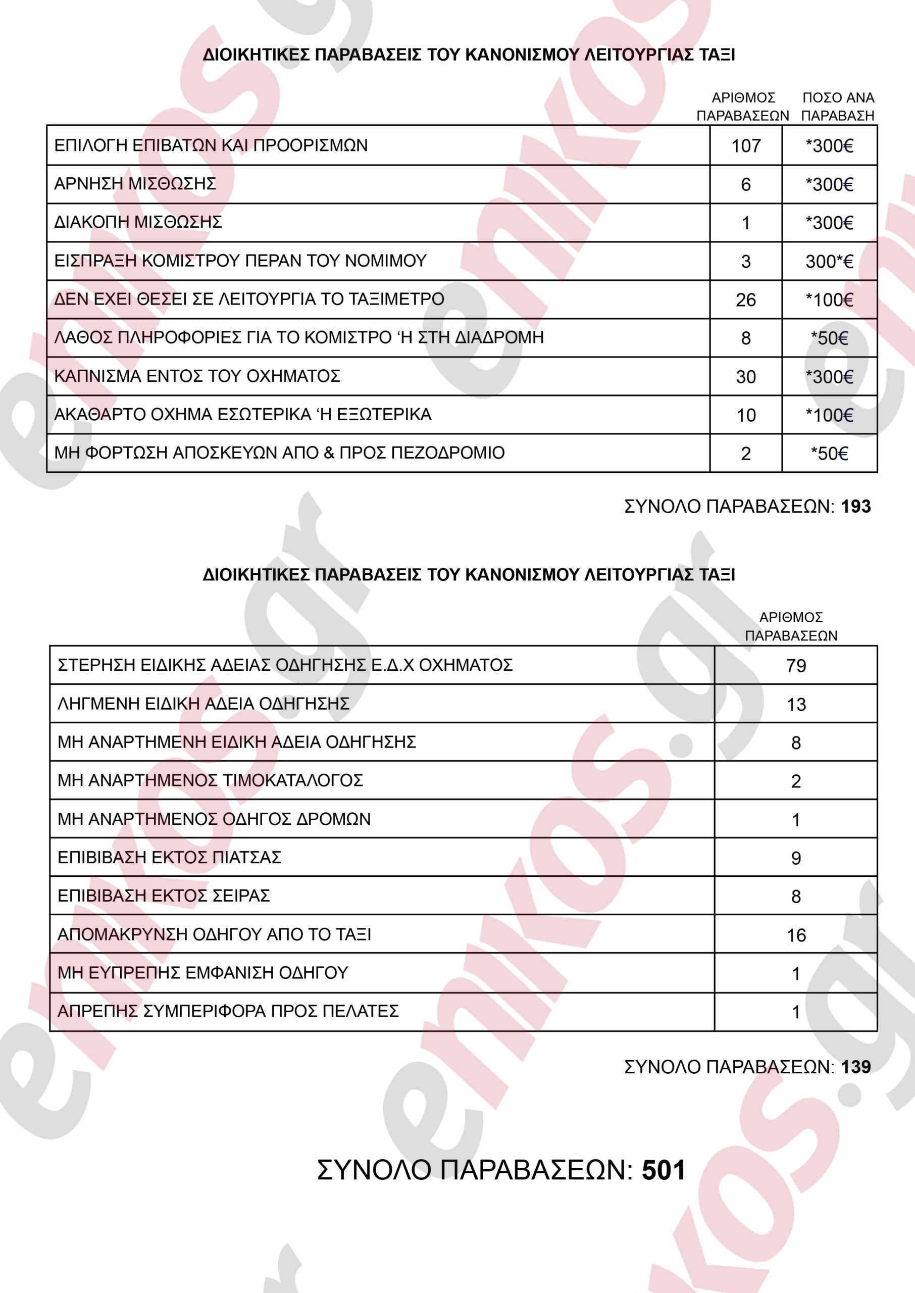 Συνολικά πάντως, όπως γίνεται φανερό από τον πίνακα υπάρχουν 500 παραβάσεις από τις αρχές του χρόνου.