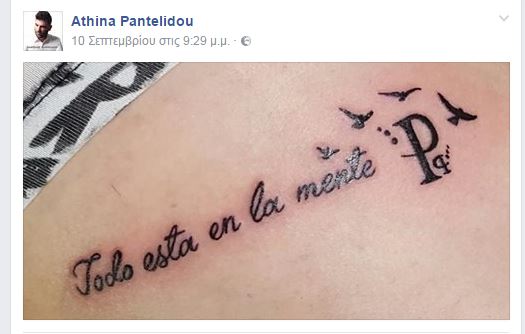 Η μητέρα του Παντελή Παντελίδη, Αθηνά Παντελίδου, δημοσίευσε στο προφίλ της στο facebook μία φωτογραφία με ένα τατουάζ για τον γιο της.