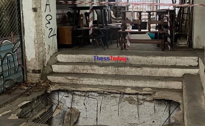 Σοκάρουν οι εικόνες από τη στοά της οδού Τοσίτσα στη Θεσσαλονίκη, εκεί όπου λίγο έλειψε να χάσουν τη ζωή τους δυο νέα παιδιά όταν το έδαφος άνοιξε κυριολεκτικά και βρέθηκαν στο κενό.