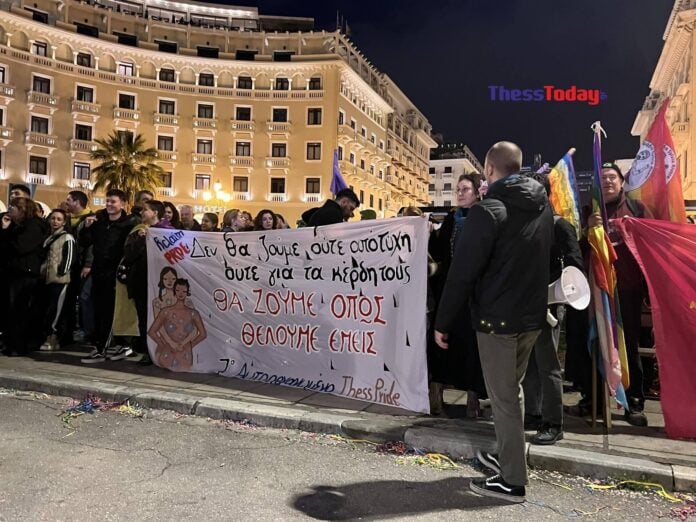 Λίγο νωρίτερα, ένταση προκλήθηκε κατά τη διάρκεια της συγκέντρωσης διαμαρτυρίας για την ομοφοβική και ρατσιστική επίθεση που εξαπέλυσε ομάδα ατόμων εναντίον δύο μελών της ΛΟΑΤΚΙ κοινότητας, χθες το βράδυ στην πλατεία Αριστοτέλους.
