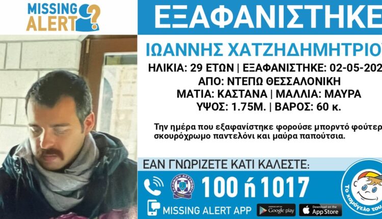 Missing alert για 29χρονο, ο οποίος εξαφανίστηκε στις 02/05/2024 και ώρα 14:00, από την περιοχή Ντεπώ Θεσσαλονίκης.