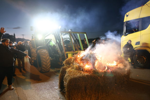 Θήβα: Ένταση στο μπλόκο των αγροτών – Έβαλαν φωτιά σε δεμάτια με άχυρο