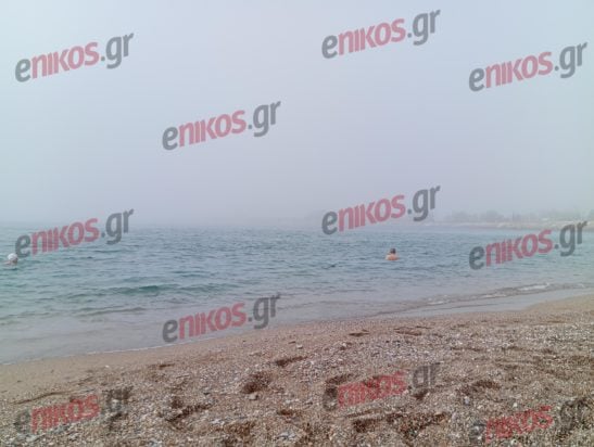 Οι λουόμενοι απολαμβάνουν το μπάνιο τους λόγω και των υψηλών θερμοκρασιών μέσα στην άνοιξη, όμως, μια «καταχνιά» είναι απλωμένη πάνω τους.