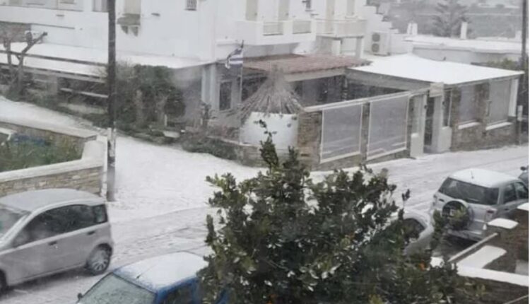 Στα χαμηλότερα υψόμετρα όπως και στην πόλη της Τήνου τα φαινόμενα εκδηλώνονται κυρίως ως χιονόνερο. Από αύριο αναμένεται σταδιακή βελτίωση του καιρού και περιορισμός των φαινομένων.