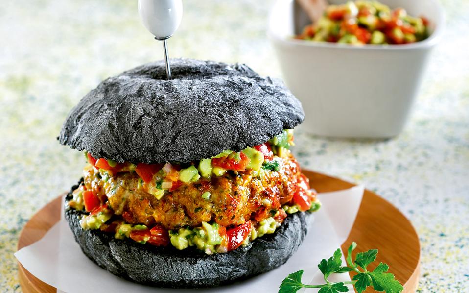 Εξαιρετικής νοστιμιάς θαλασσινό μπέργκερ που θα λατρέψουν μικροί και μεγάλοι. Η σεφ μάς δίνει και τη συνταγή για το ιδιαίτερα γευστικό, μαλακό και αφράτο ψωμάκι με μελάνι σουπιάς μέσα στο οποίο το σέρβιρε πέρυσι στο εστιατόριο «Γεύσεις με Ονομασία Προέλευσης». Αν δεν έχουμε χρόνο, παίρνουμε έτοιμα ψωμάκια από το φούρνο μας ή συνοδεύουμε το μπιφτέκι γαρίδας με τη σαλάτα αβοκάντο και γαρνιτούρα της αρεσκείας μας (ρύζι, σαλάτα κ.λπ.).
