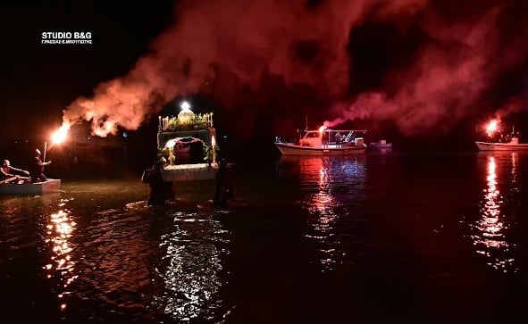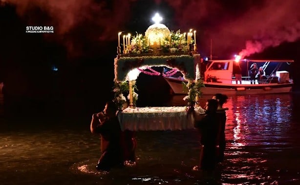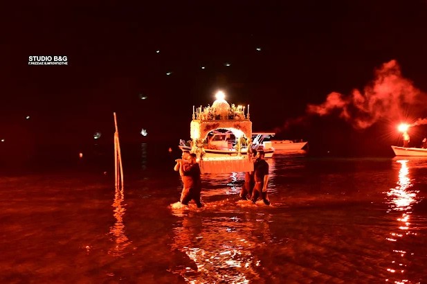 Μέσα σε ιδιαίτερα κατανυκτική ατμόσφαιρα έγινε η περιφορά του Επιταφίου στο Τολό της Αργολίδας το βράδυ της Μεγάλης Παρασκευής 10 Απριλίου, με τον Επιτάφιο να μπαίνει μέσα στη θάλασσα, σε ένα παραδοσιακό έθιμο που σχετίζεται με την Κρητική καταγωγή των Τολιανών.