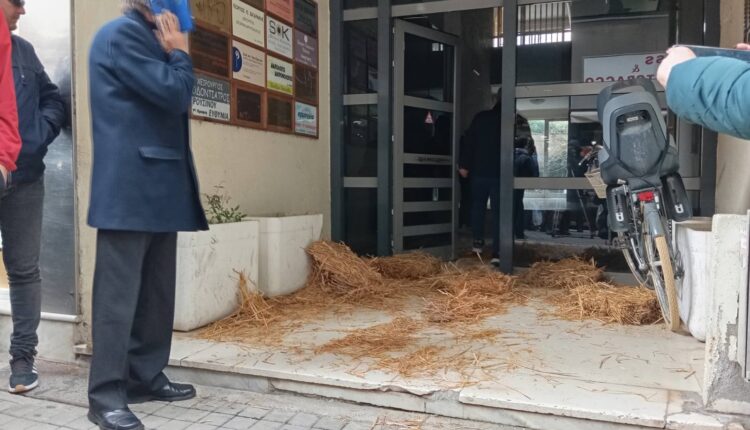 Τρίκαλα: Αγρότες έριξαν σανό έξω από πολιτικά γραφεία τοπικών βουλευτών – ΦΩΤΟ και ΒΙΝΤΕΟ