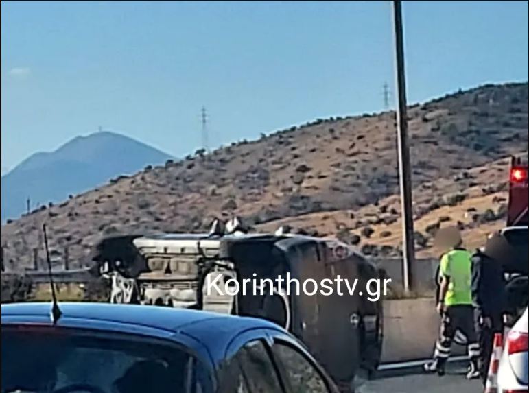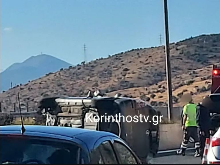 Τροχαίο στην εθνική οδό Αθηνών-Κορίνθου – Αυτοκίνητο προσέκρουσε σε μπάρες και τούμπαρε