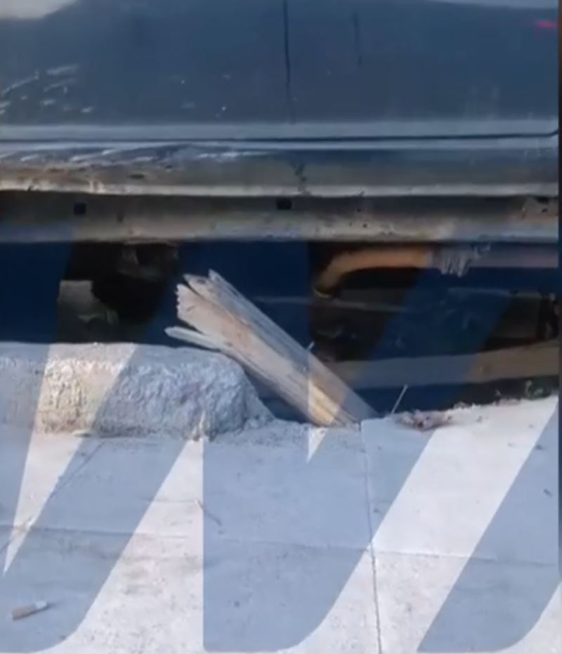 Όταν λοιπόν άνοιξε την πόρτα του συνοδηγού για να κατέβει κάτω, βρέθηκε μέσα στην τρύπα και εγκλωβίστηκε στην κυριολεξία, κάτω από το όχημά του.