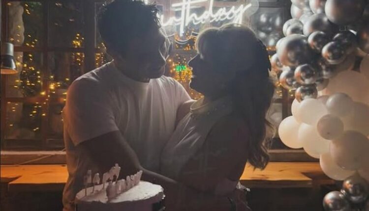 Σε ένα από τα στιγμιότυπα ο Δήμος Αναστασιάδης στέκεται μπροστά από την τούρτα με τα αναμμένα κεράκια, ενώ σε άλλα καρέ το ζευγάρι ποζάρει αγκαλιασμένο, σε ιδιαίτερα ζεστή ατμόσφαιρα.