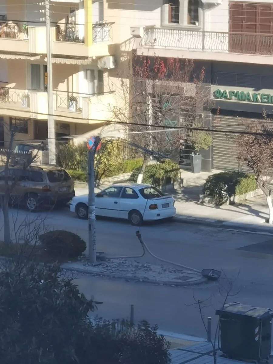 Ο δυνατός αέρας έριξε μέχρι και… κολώνα φωτισμού σε κεντρικό δρόμο της Καλαμαριάς