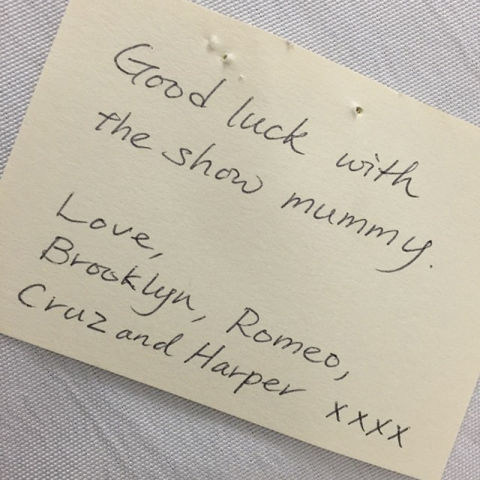 Ντυμένη όλη η οικογένεια με ασπρόμαυρο outfit έβγαλαν selfies με τον μπαμπά τους David, ενώ στο τέλος βρέθηκαν στα παρασκήνια για να συγχαρούν τη Victoria- που έδειχνε πολύ συγκινημένη. Μάλιστα, μερικές μέρες πριν, η ίδια είχε ανεβάσει το σημείωμα που της είχαν στείλει τα τέσσερα παιδιά της για «καλή επιτυχία» δηλώνοντας συγκινημένη «Αγαπώ τα μωρά μου!».