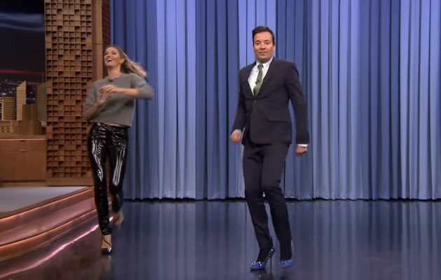 Βρήκε πρόχειρο τον Αμερικανό παρουσιαστή Τζίμι Φάλον, ο οποίος εντελώς τυχαία είχε πρόχειρες κάτι 15ποντες με φουλ του στρας γόβες.