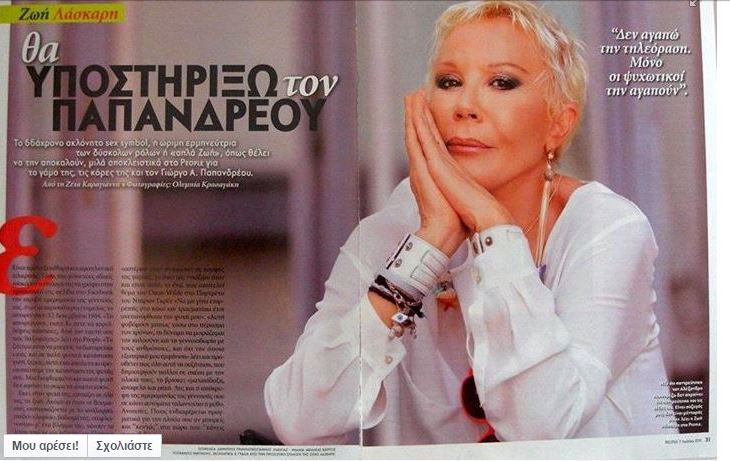 *H παρακάτω φωτογραφία είναι από συνέντευξη της Ζωής Λάσκαρη το 2009